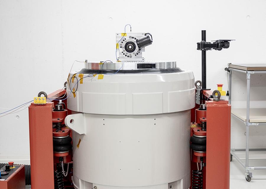 Beim Vibrationstest wird der E-Bike Antrieb von maxon ordentlich durchgeschüttelt. Auf einem speziellen Vibrationstisch werden unterschiedliche Untergründe wie Kies, Beton oder Waldboden mit Wurzeln und Drops simuliert. Stefan Imfeld sagt dazu: «Ziel ist es, sicherzustellen, dass sämtliche Schrauben, Kabelverbindungen und Gehäuseteile dauerhaft die Funktion erfüllen.»